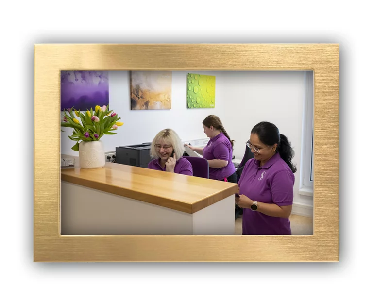 der einladende Empfangsbereich, an dem unser Team Sie freundlich begrüßt